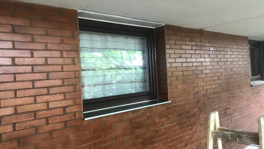 Hier wurde eine Außenfassade in Mauer-Optik erneuert. Fliesen in Ziegel-Optik wurden genauestens verlegt.
